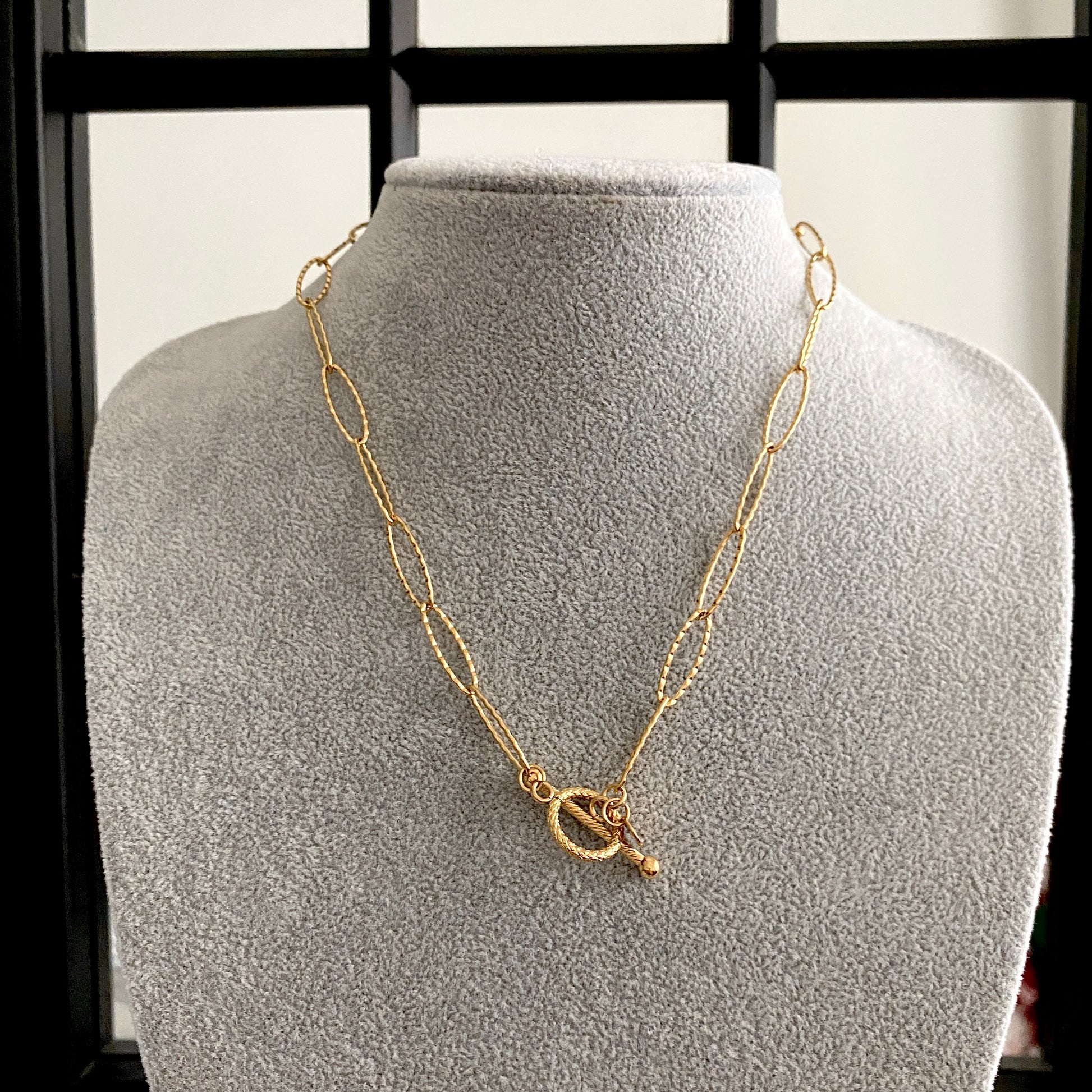 Material: Acero Inoxidable chapado en oro PVD de 14K.